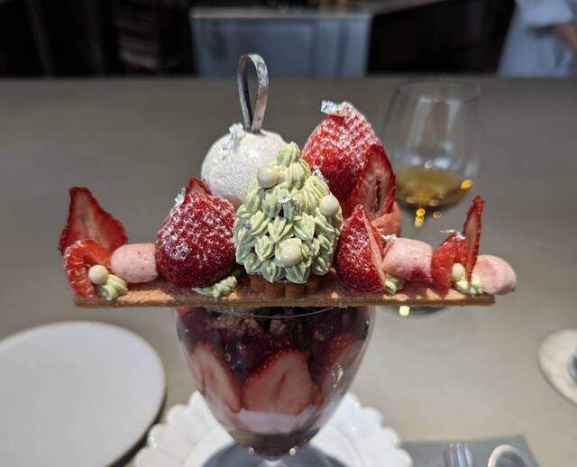 また、トップの華やかなトッピングには、一捻りしたサプライズもあって、大変に手の込んだパフェであります。