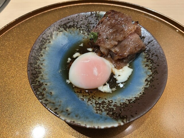 和牛ユッケにクリーミーな生雲丹がたっぷり