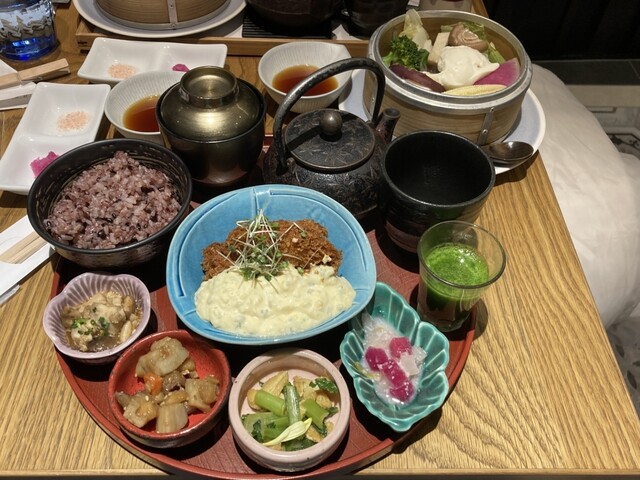 週替わりに蒸籠蒸しと一汁十菜膳をいただきました。