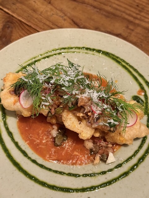 牡蠣のパヴェは揚げた牡蠣にトマト系のソースが良き、