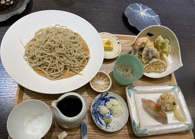 「せいろ蕎麦」か「かけ蕎麦」+天ぷら+お寿司+香の物+小さな甘味