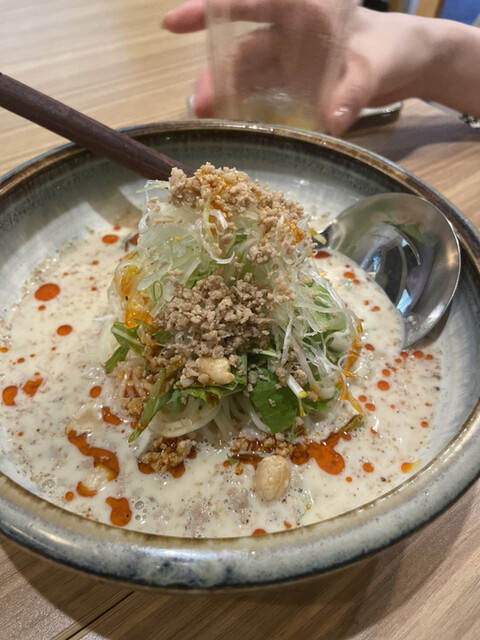 あん肝、湯葉巻き揚げ、大アサリ、焼きそば、豆乳坦々麺いただきました