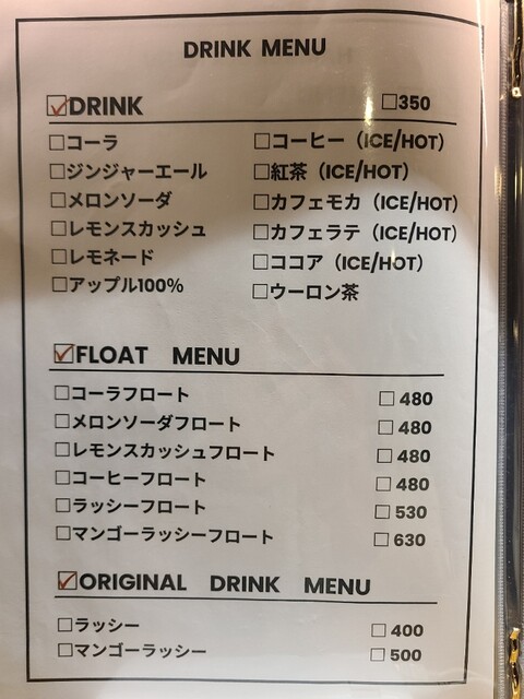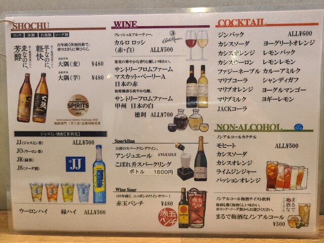 ドリンクメニュー