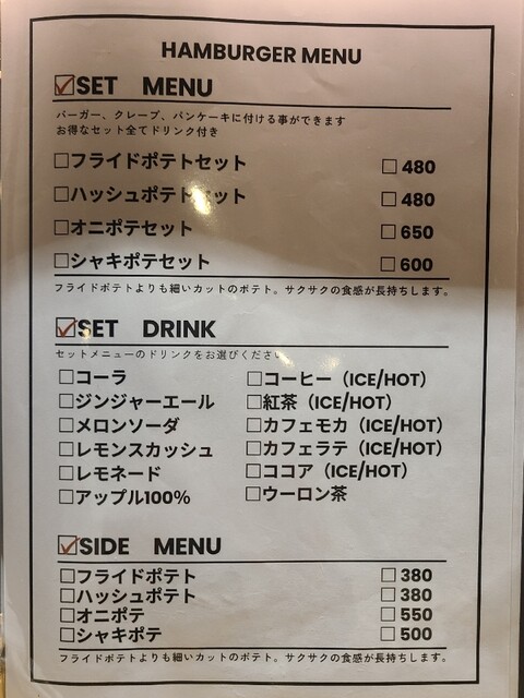 ハンバーガーメニュー