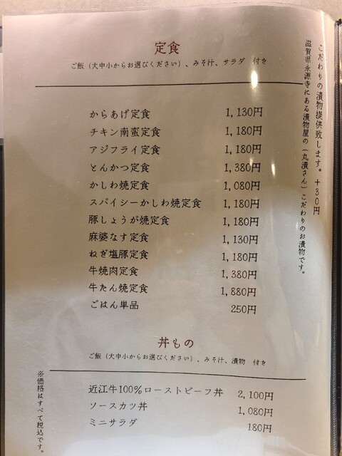 定食メニュー