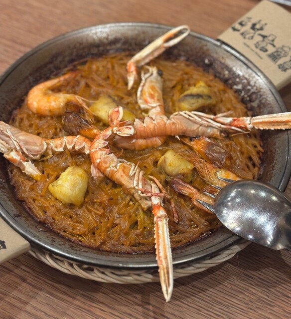 フィデウア デ ガンディア、お米ではなくパスタを炊きあげたパエリア。パスタには魚介の旨みがよく染み込んでおり、ちょっと硬めに炊きあげたパスタの食感がクセになりました。
