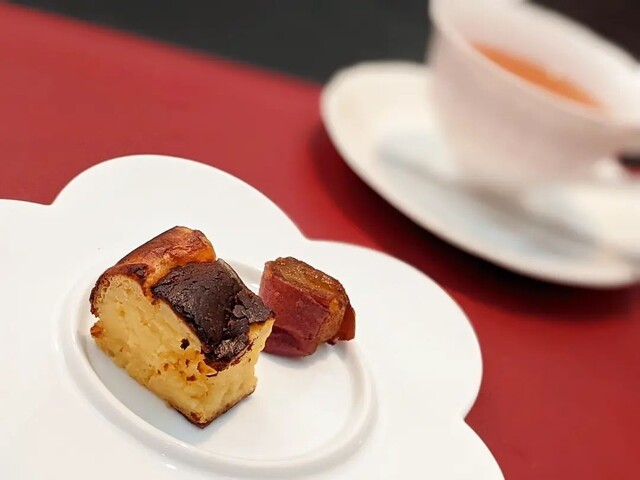 素材そのものの甘みがぐっと引き出された薩摩芋に、角のない程よい甘さのバスクチーズケーキ。どちらもどこかほっとする味わいで、ゆったりと余韻に浸ることができた。