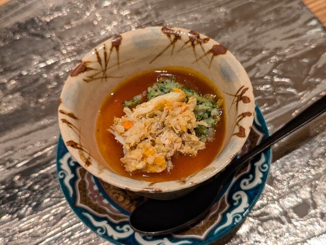 蟹、海老、貝の凝縮された旨みが、なんとも贅沢な一品。口にするたび、思わず笑みが溢れる。おかわりさせていただいた。