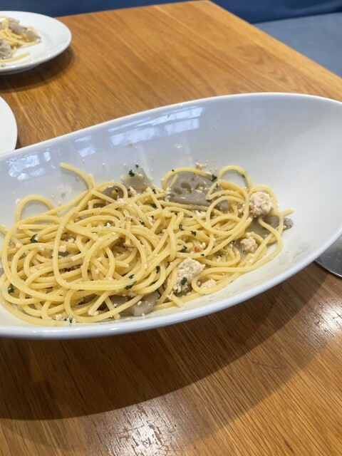 メインはペペロンチーノ。連れはニョッキを注文。いずれも小洒落たカフェらしい装いの食事で日曜午後にのんびりするにはちょうど良いです。