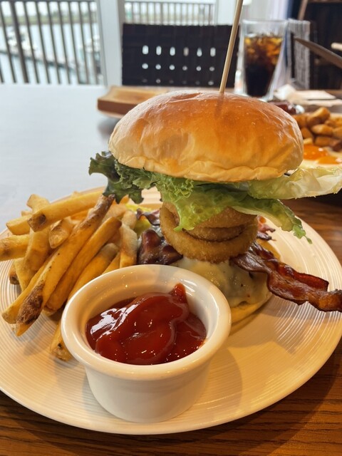 また、ハンバーガーは、拳2個分くらいの高さがあり、とてもダイナミック!