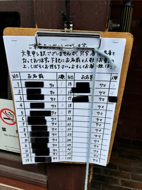 お店に到着したのは平日の月曜日、11時半でした。しかし、名前を記入する時点で既に17番目で、2巡目の入店は無理だとわかりました。平日なのに人気店過ぎる。。