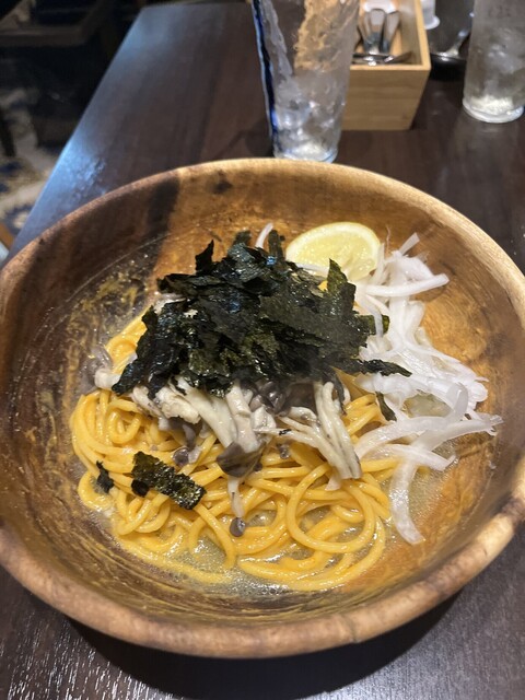 東中野駅前に系列店も含めると2店舗あります。たらこしめじ、明太子しめじや塩系のパスタも美味しいです。ウニ系のパスタもとても美味しくて、濃厚なだしが特徴です。日本文化的なパスタでは都内で一番美味しいと思っています。すこし提供時間に時間がかかります。