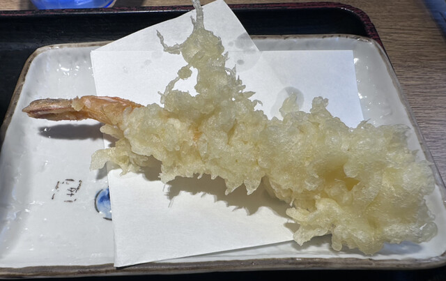 トッピングのえび天は別皿、今日はそのまま頂きます