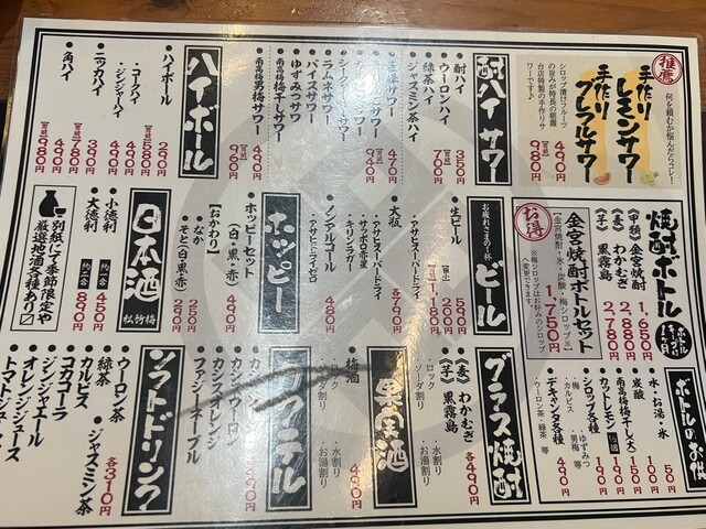 メニュー表見ると小金井の柳田屋のメニュー表に似ている。柳田屋の好物メニューである牛すじ煮込みとそのハーフもあるので間違い無いだろうと後で調べたら、同じカミナリ屋グループだった。