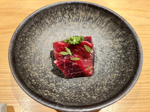 シンプルに軽く醤油で和えてある感じで、大将曰く「良いミンククジラが入りましたので」との事でしたが、赤身と脂身のバランスが良く絶品でした。