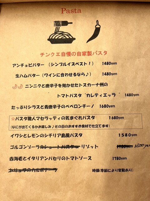 お通しのショートパスタがジェノベーゼの香りが強くてモチッとしてこれだけでワイン1杯空きます。