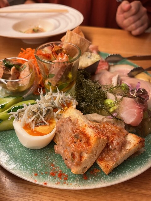 前菜盛り合わせは相変わらずのボリューム。どれも本当に美味しいです。これでボトルワイン1本空きます。