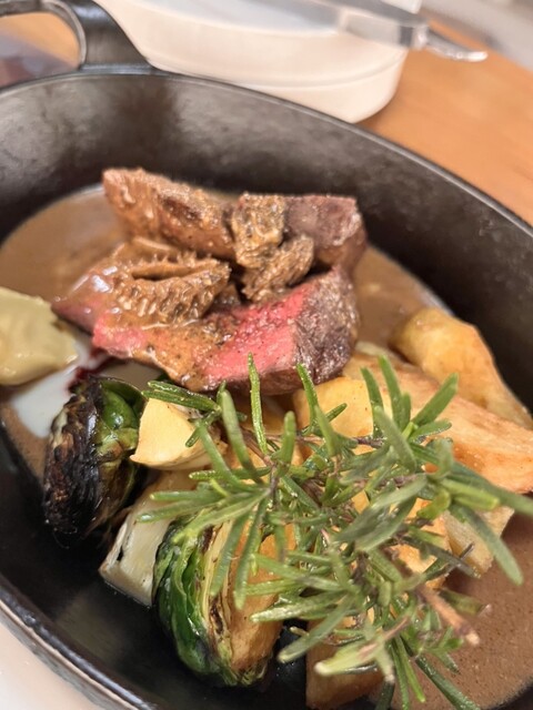 そして本日のメインはあか牛のランプ。赤身ですがしっとりしていて旨味がかなり強い。そしてきのこのソースがとってもお肉に合って美味しかったです。これはまた頂きたい。