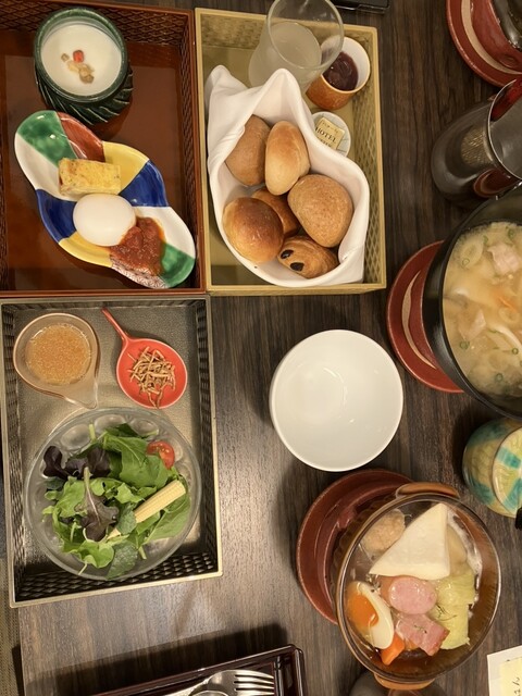 翌日の朝食もアップしてます。和食、洋食、ベジタリアン(野菜や湯豆腐など)の中から選べ、各人別々に注文することも可能です。私たちは洋食も和食を選びました。しいたけの陶板焼きが大変美味しかったです。