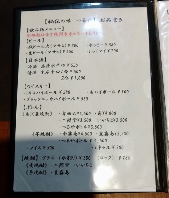 ドリンクメニュー