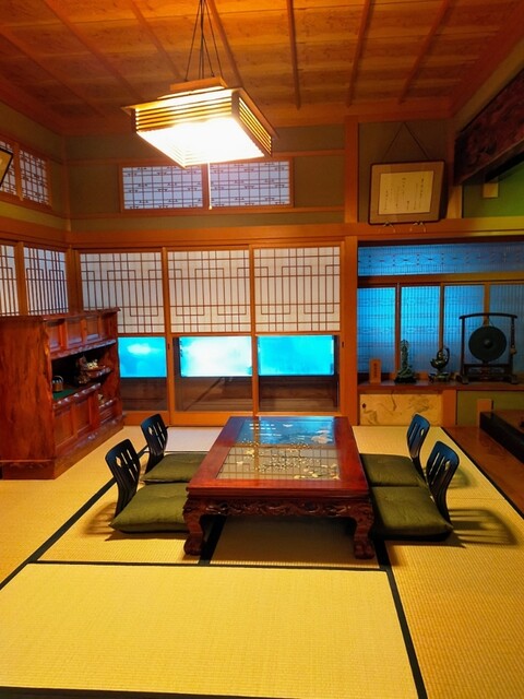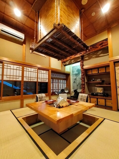 囲炉裏のある個室から素敵なお庭を眺めつつ