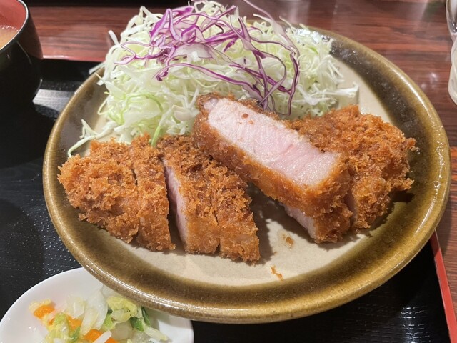 カラッと揚がった衣とピンクのお肉がしっとり柔らかい、脂身は甘く旨みが溢れます