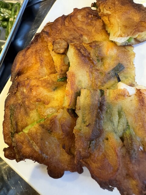 サムギョプサルと牛すじ煮込み、チヂミを注文しました。