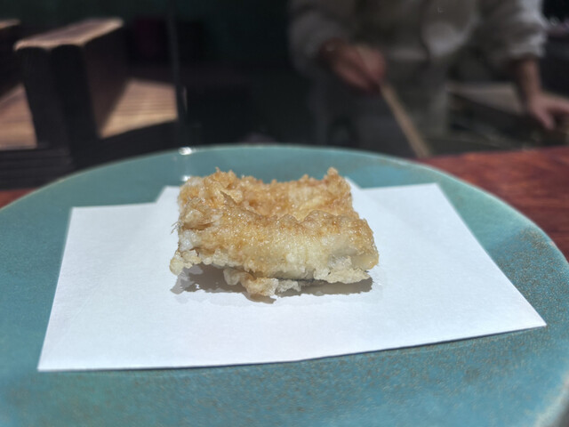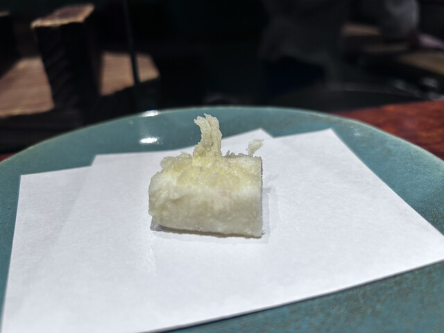 ホッキ貝ってこんなに甘いんだと感じる揚げ方。貝のおいしさが引き立っていました。