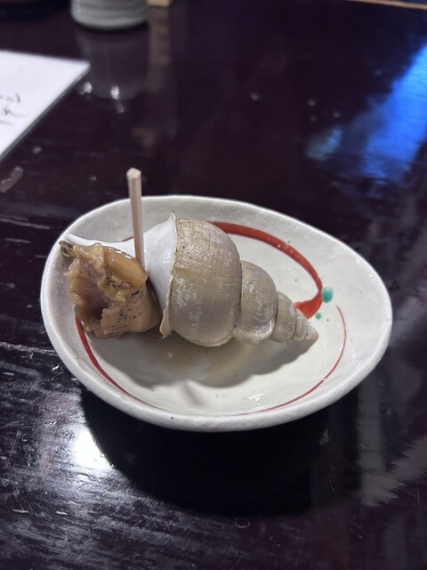 まずはお通しのばい貝。かなり大きくてお通しからテンション上がります。