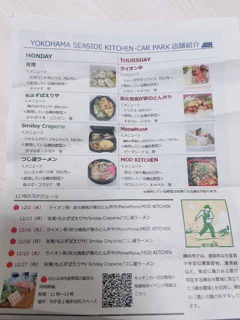 横浜市庁舎前にキッチンカーが3台並んでいて、