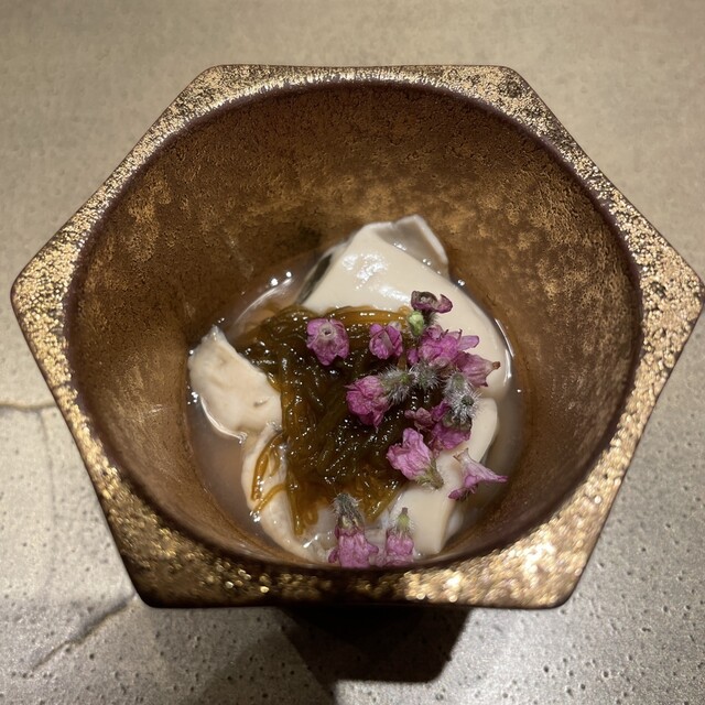 料理は、豪華食材で雲丹、イクラ、キャビア、天然とらぶぐ白子、クエ、のど黒、カラスミ、金粉、三崎鮪、牡蠣、黒鮑、ナマコ。