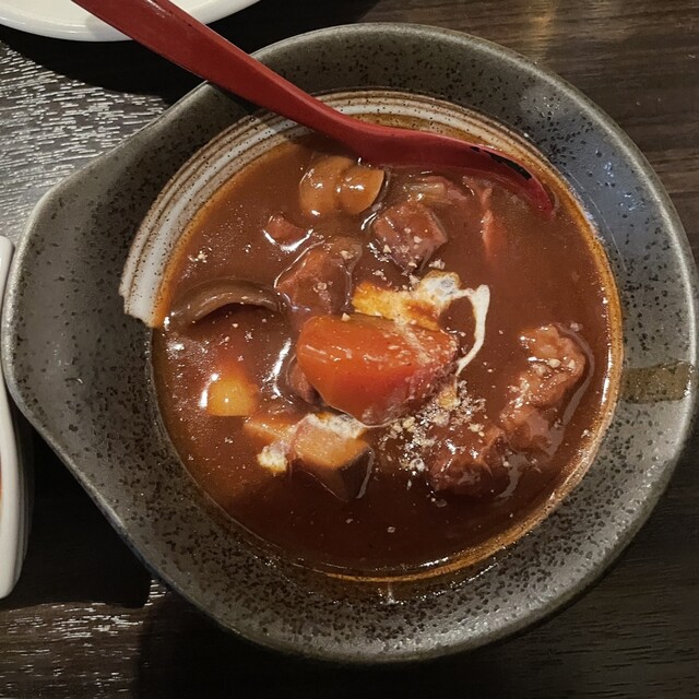 以前から気になっていて予約サイトおまかせから予約を取りました。予約していた平日の19時30分に3名で訪問。店内中央ら辺のテーブル席に案内されました。