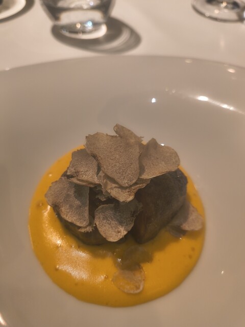 福島の伝統的な「三五八漬け(さごはちづけ)」を取り入れた一皿です。フランス料理の技法と、日本の伝統調味料が融合した時の驚き。絶妙な火入れによる食感と、三五八漬け特有のコクが見事に調和しており、シェフの探究心に脱帽しました。