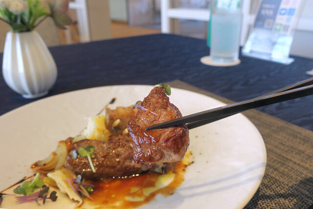 そして食べ終わる頃に常陸牛のカットステーキが登場。