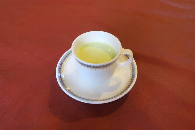季節野菜のスープは枝豆の冷製スープで枝豆