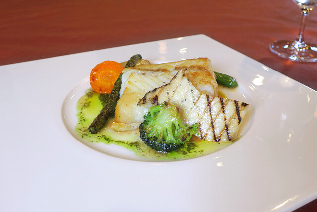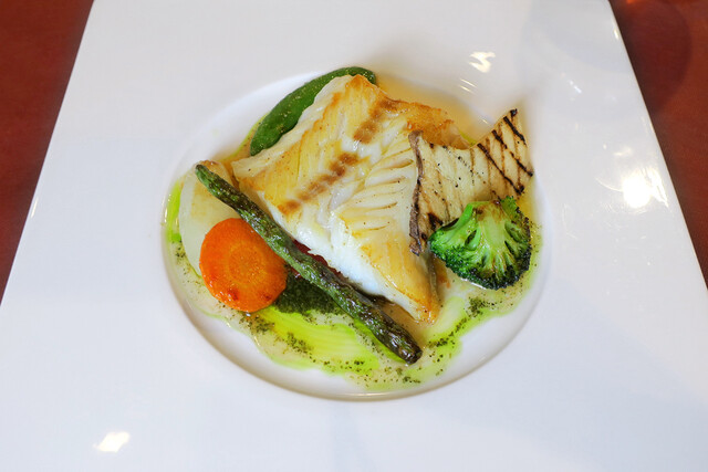お魚料理は真鯛のポワレで、淡白の真鯛に3
