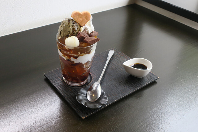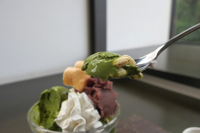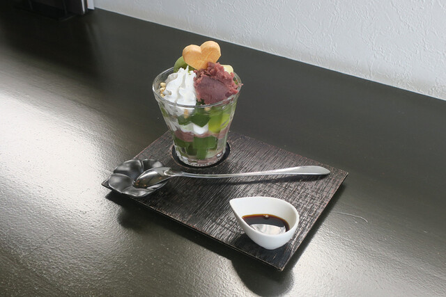 抹茶の寒天は黒蜜を絡めると相性も抜群。