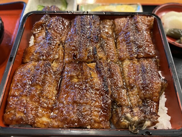 うなぎはみっちり4切れ。皮目がパリパリで香ばしく焼き上がってて、甘めのタレとの相性が最高です。
