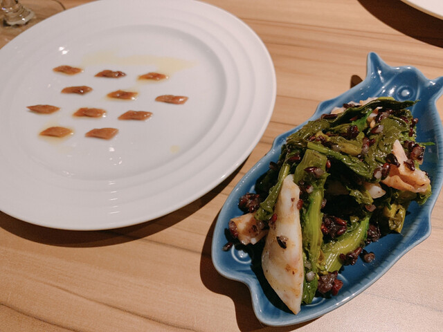 いつもの世界一のアンチョビ。なんて美味しいのー!これでずっとちびちび呑みたい。アオリイカのマリネも美味しかったです。