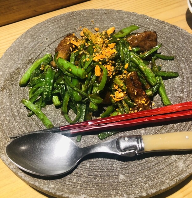香菜に緑の唐辛子を忍ばせた北京の名菜、、とのこと
