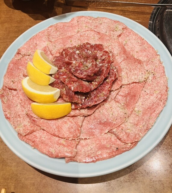 漬け物盛り合わせをつつきながらしばらく待つと登場したのは圧巻!!大輪のタン塩!!