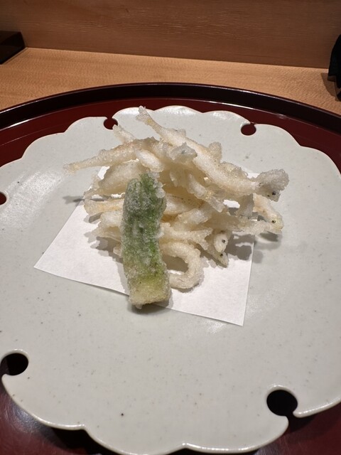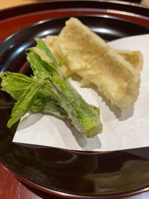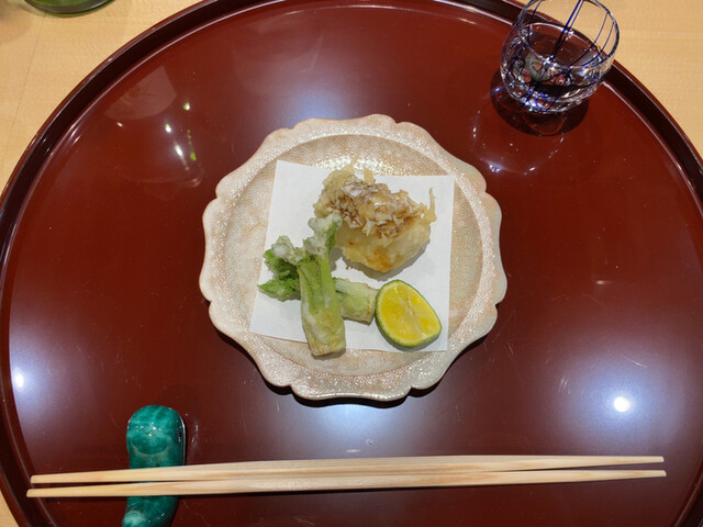 ◎しらかわ(白甘鯛)の鱗揚げとタラの芽の天ぷら