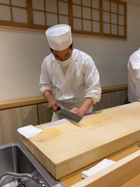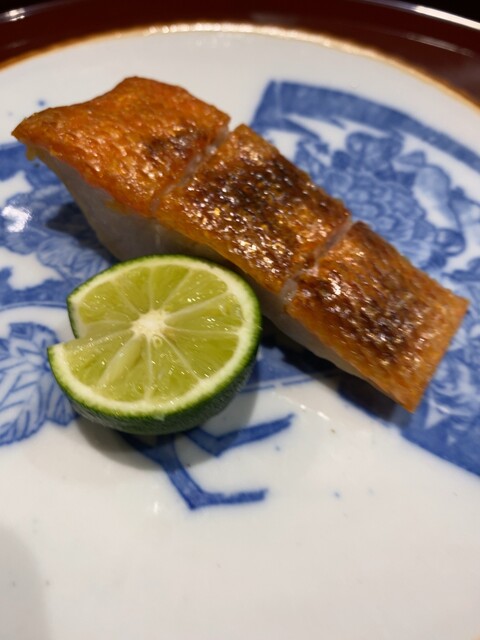 もちろん、ブランドである明石の鯛の美味しさは鉄板なんですが、僕はイカの新子が大好きでして・・・。この柔らかさ、歯切れ感、絶妙な厚み、これはもう本当に罪なヤツですね。ここらで日本酒に歯止めが効かなくなってきそうになりました(^◇^;)。