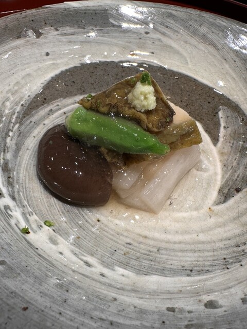 この日は鮑と芋茎、大黒しめじが乗った一皿からスタートです。何気なく食べちゃいますけど、考えてみると贅沢な一皿ですよね〜。そしてグングンと胃が活性化されていきます!