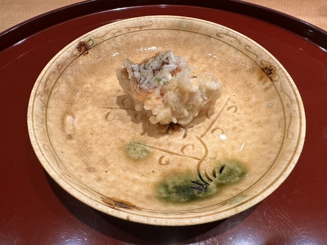 ーそして筍。ほんのりと唐揚げにしてるんですね!そしてこの筍の美味しさ、食感、最高の中でも最高の一品!これも今まで食べた筍の中でも一番美味しかったです!何でもやはり作り手とその作り手が掘って収穫する時に出来るだけ深く掘って丁寧に根を残したまま獲ったりと、手間暇が掛かっているからの美味しさとの事ですが、圧倒的な美味しさでした。脱帽です。