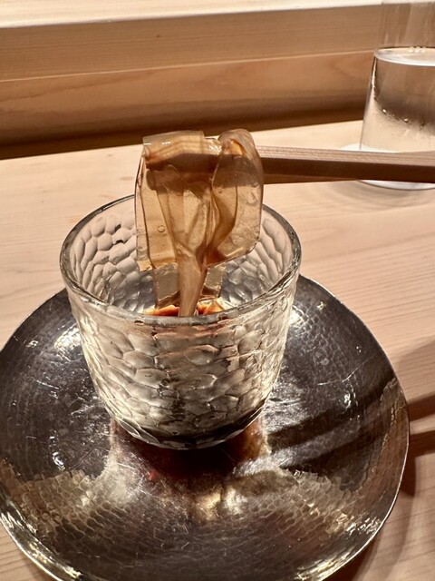 ー目の前でスクラッチから作ってくれる葛切りはプリンプリンで食感素晴らしいです。黒蜜のドンピシャな甘さ具合も含めて、完璧なデザートですね。