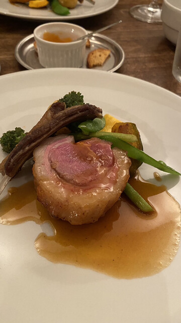子羊は綺麗なロゼ色、骨周りの脂はコンフィでカリカリにしており非常に食べやすい