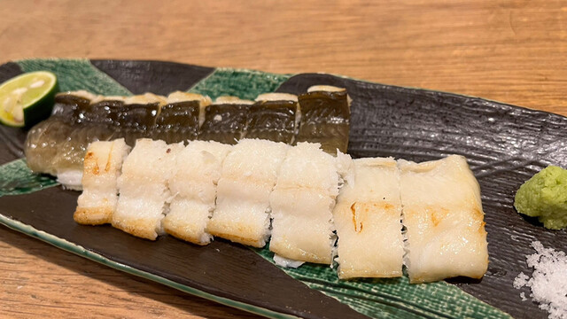 フグの唐揚げ、あん肝、穴子白焼き、岩牡蠣、ハモの湯引き、金目鯛、赤身、ウニ、アジ、シマアジ、コハダ、筋子、中トロ、ノドグロなどなど