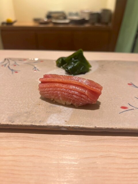 さらに大間のマグロのヅケ!ネットリと程よい酸味のある赤身に醤油の旨みが加わり、程よい温度の白酢のシャリがちょうど良い具合に口の中でほぐれて赤身の旨さを引き立て、これまた熱燗がグビグビ進む(^o^) 良いネタをそれを引き立てるシャリで愚直に握ってくれるお鮨屋さん。日本酒も数は多く無いですが、お鮨の旨さを引き立てる厳選したものを置いています。安定していつも美味しいです。