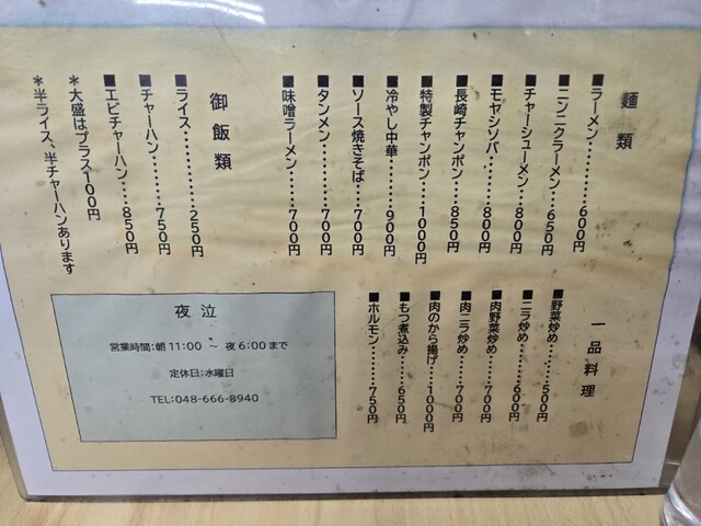 夜泣(大宮、鉄道博物館、北大宮/ラーメン、ちゃんぽん)